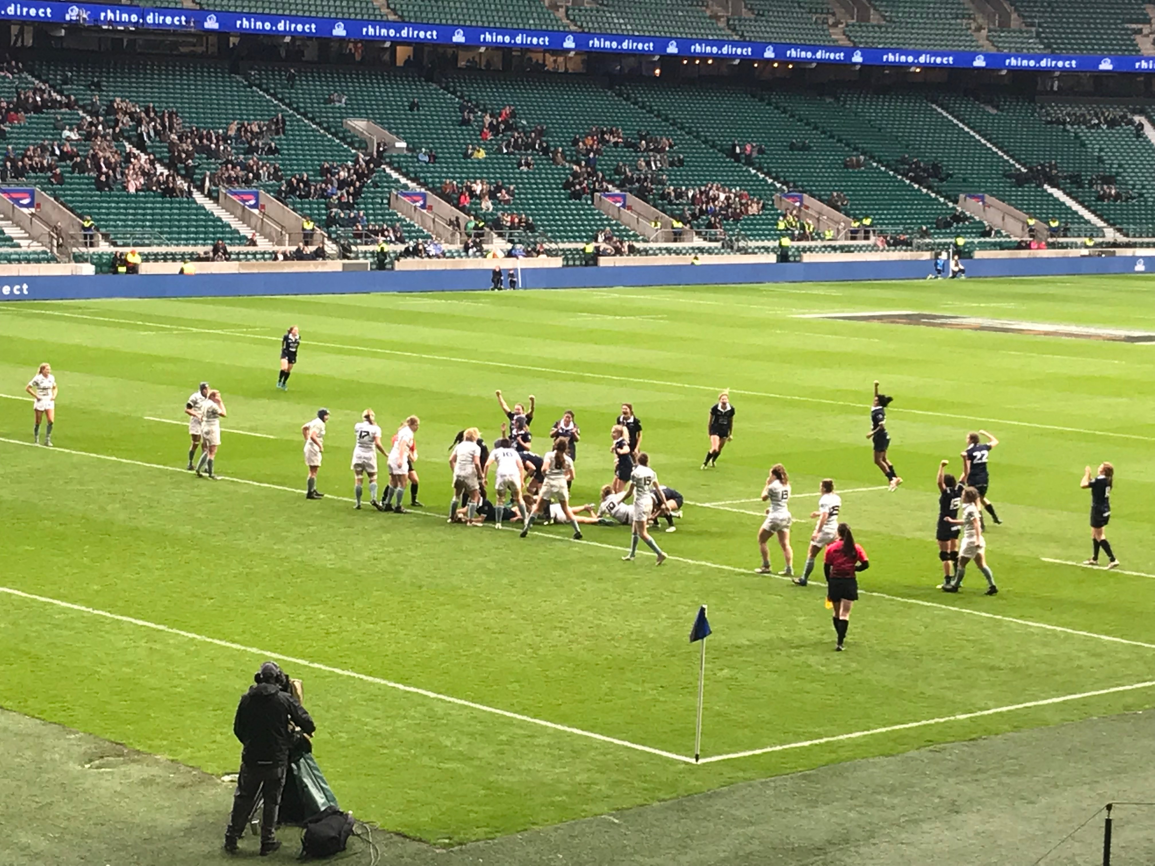 Even a rugby-nerd such as myself had reservations about spending the guts of six hours to watch two games. I need not have worried as both games were incredible clashes which kept us entertained throughout. We had made a promise, as an Oxfordshire school, that we would shout for Anna’s Cambridge in the first game and for the Oxford men (I couldn’t have shouted against you Jagsy (Oxford Blue and now coach of the men’s side) in the second game. We choose wisely as both the teams we backed, won their respective contests.
